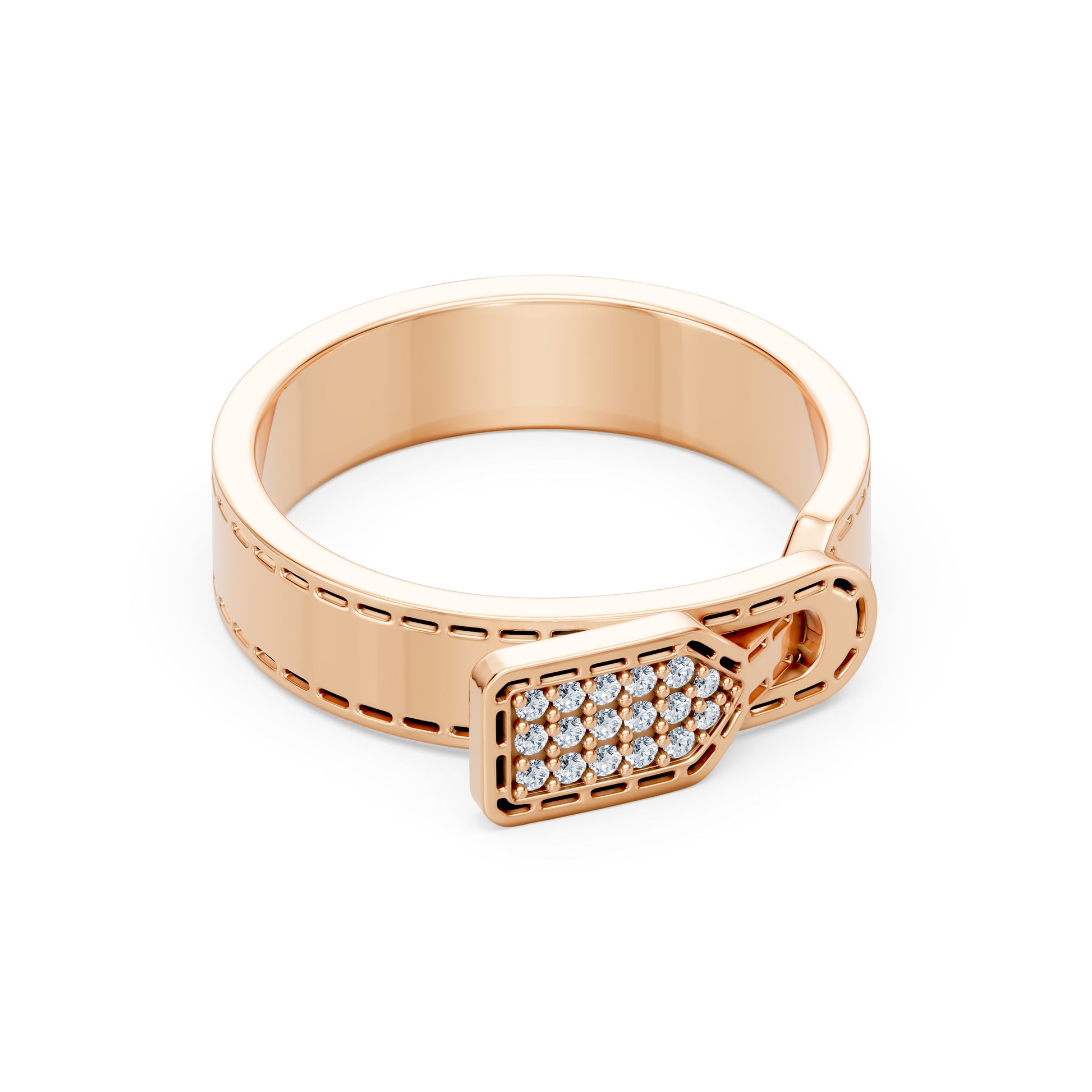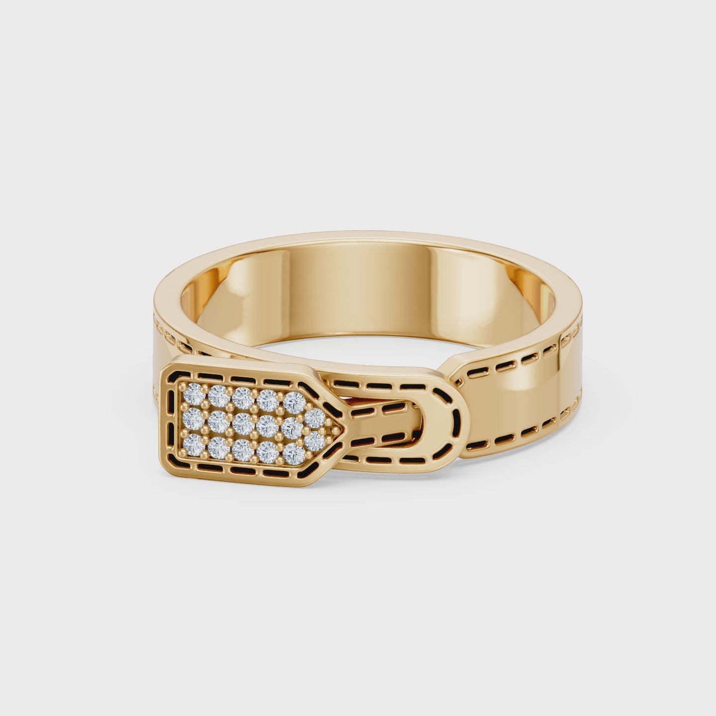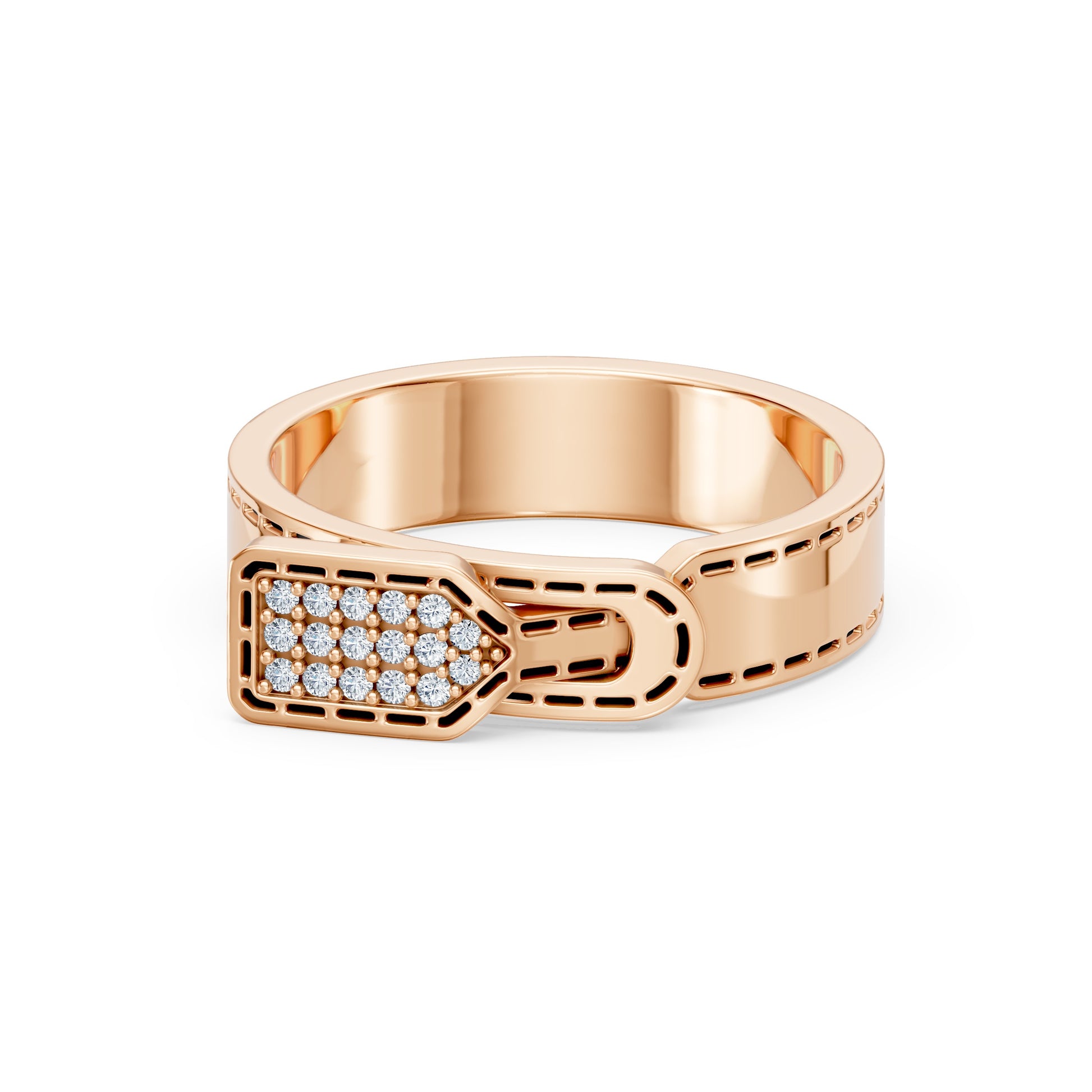 Le corps de bague dévoile un motif de couture finement travaillé, clin d’œil aux finitions de la haute maroquinerie. En son centre, une étiquette stylisée évoque les tags de bagage, symbole du souvenir et du déplacement, ici sertie de 17 diamants ronds de 1,1 mm totalisant 0,08 carat. Leur éclat subtil souligne les lignes franches et équilibrées du design, tout en renforçant sa signature distinctive.