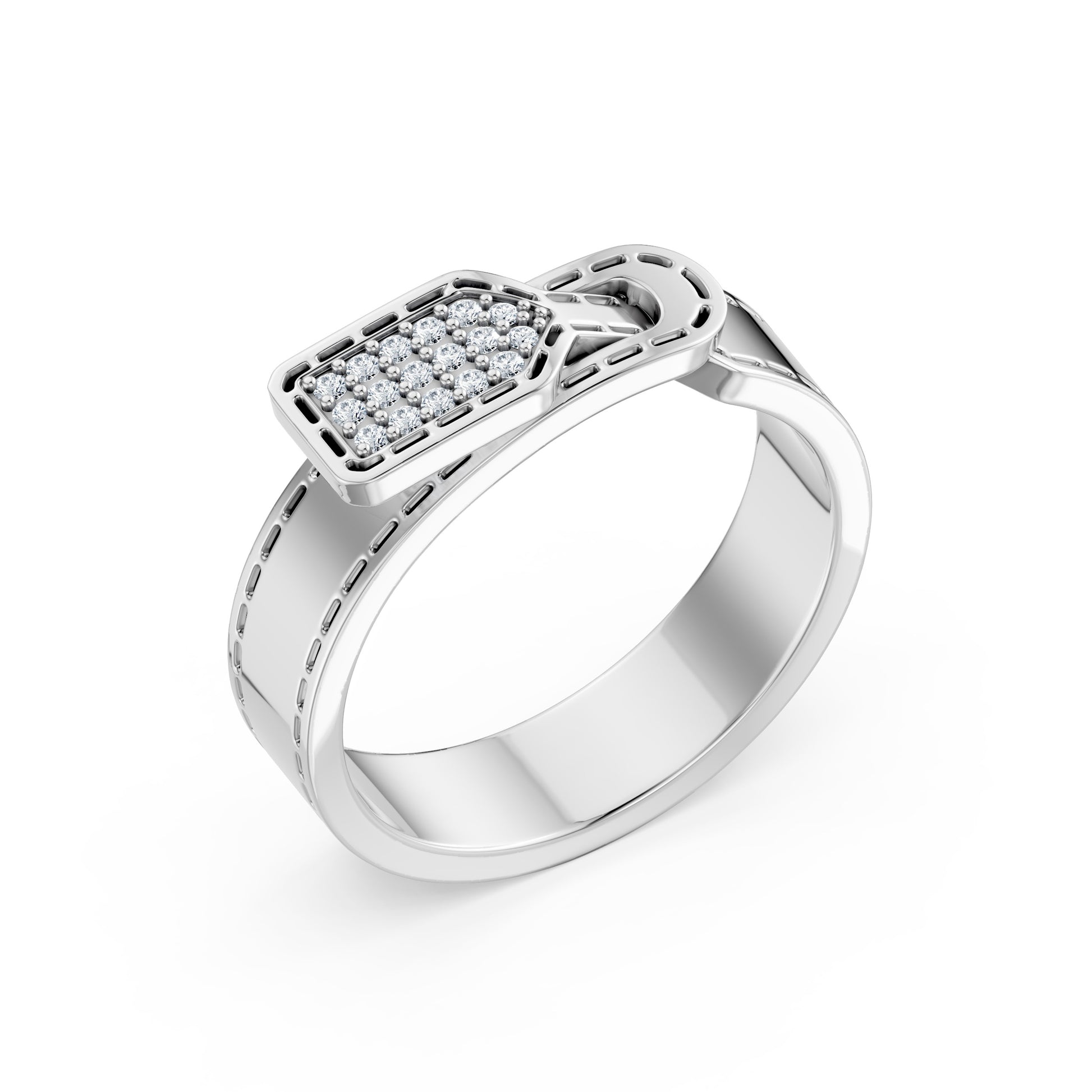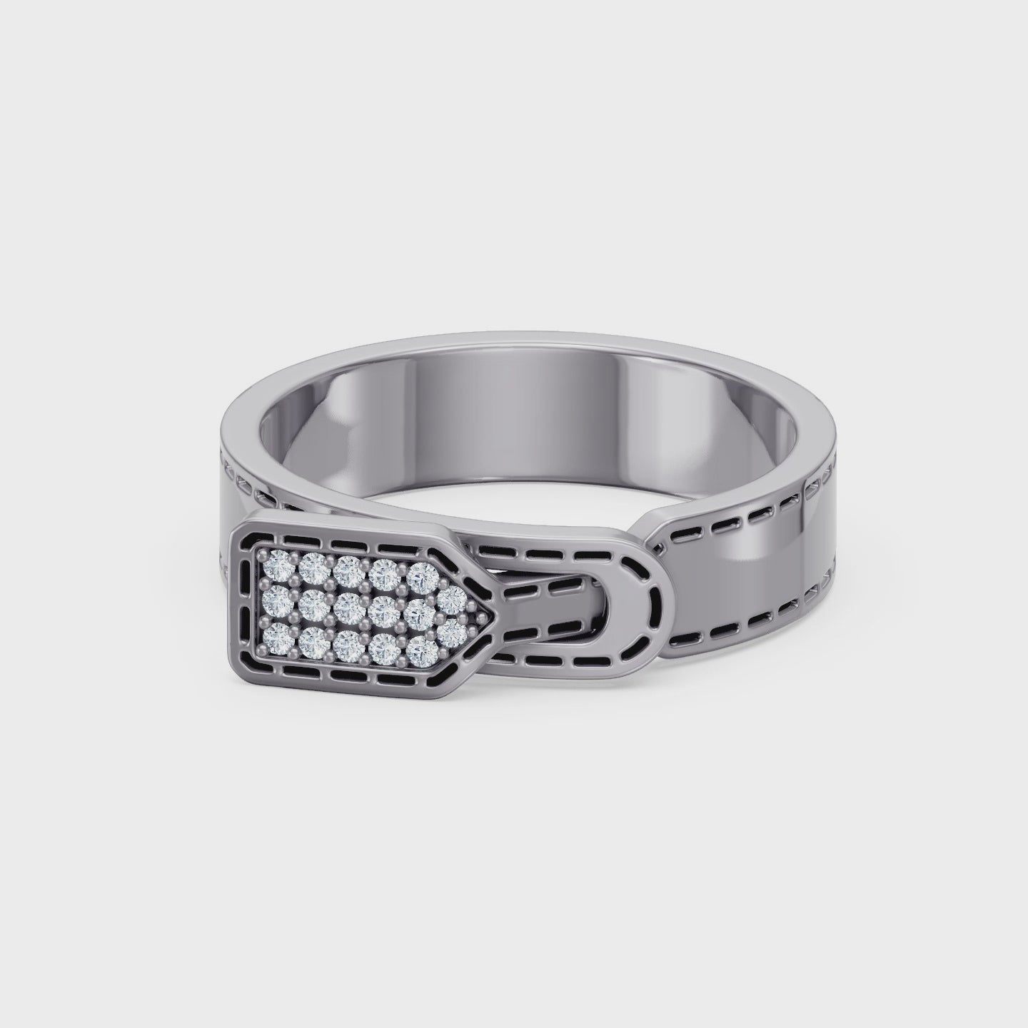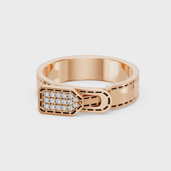 Le corps de bague dévoile un motif de couture finement travaillé, clin d’œil aux finitions de la haute maroquinerie. En son centre, une étiquette stylisée évoque les tags de bagage, symbole du souvenir et du déplacement, ici sertie de 17 diamants ronds de 1,1 mm totalisant 0,08 carat. Leur éclat subtil souligne les lignes franches et équilibrées du design, tout en renforçant sa signature distinctive.