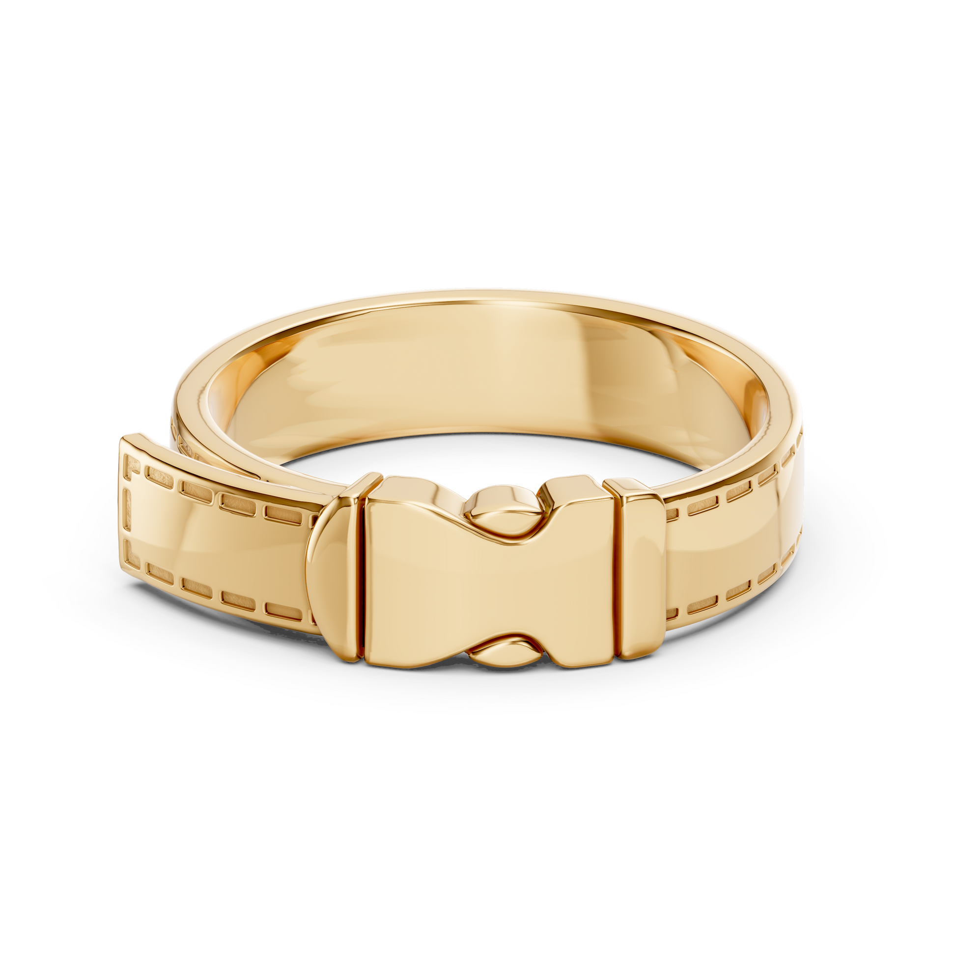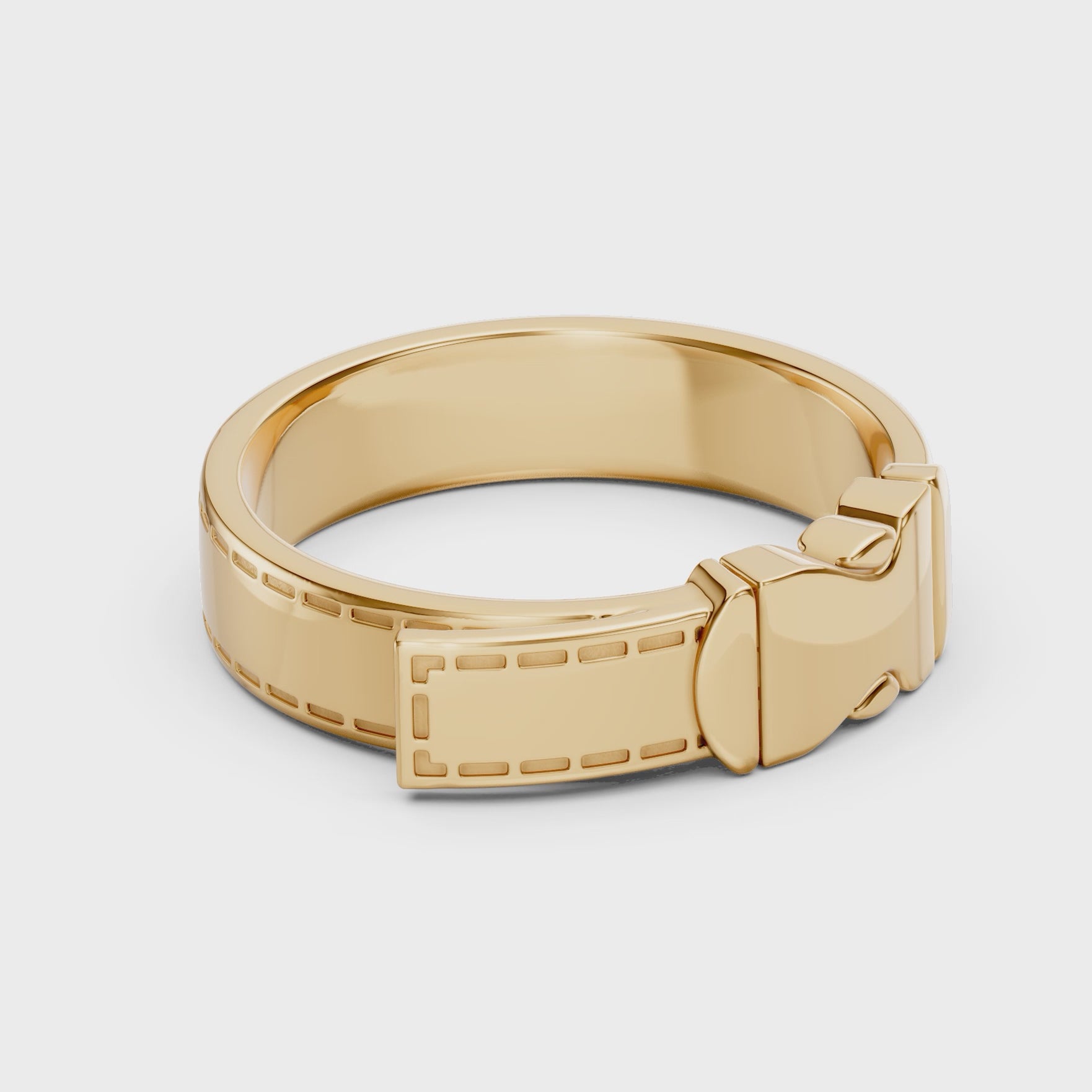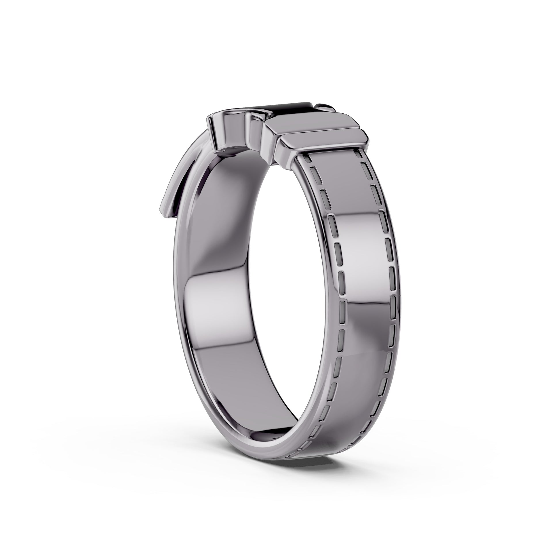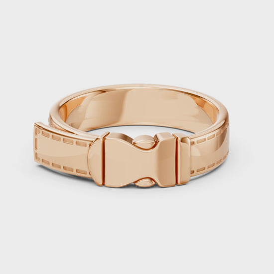 Le corps de bague révèle le motif de couture caractéristique de la Maison, clin d’œil aux finitions de la maroquinerie de luxe. En son centre, un fermoir stylisé devient l’élément central de la composition : à la fois symbole de lien, de solidité et d’élégance. Un bijou pensé pour celles et ceux qui voient dans chaque détail un signe d’intention.