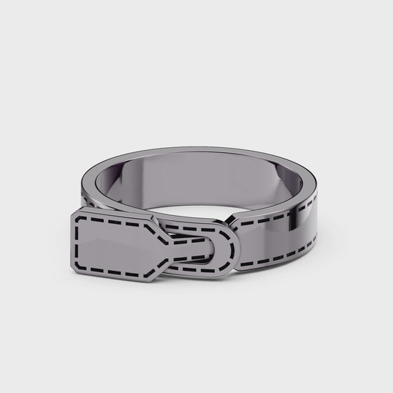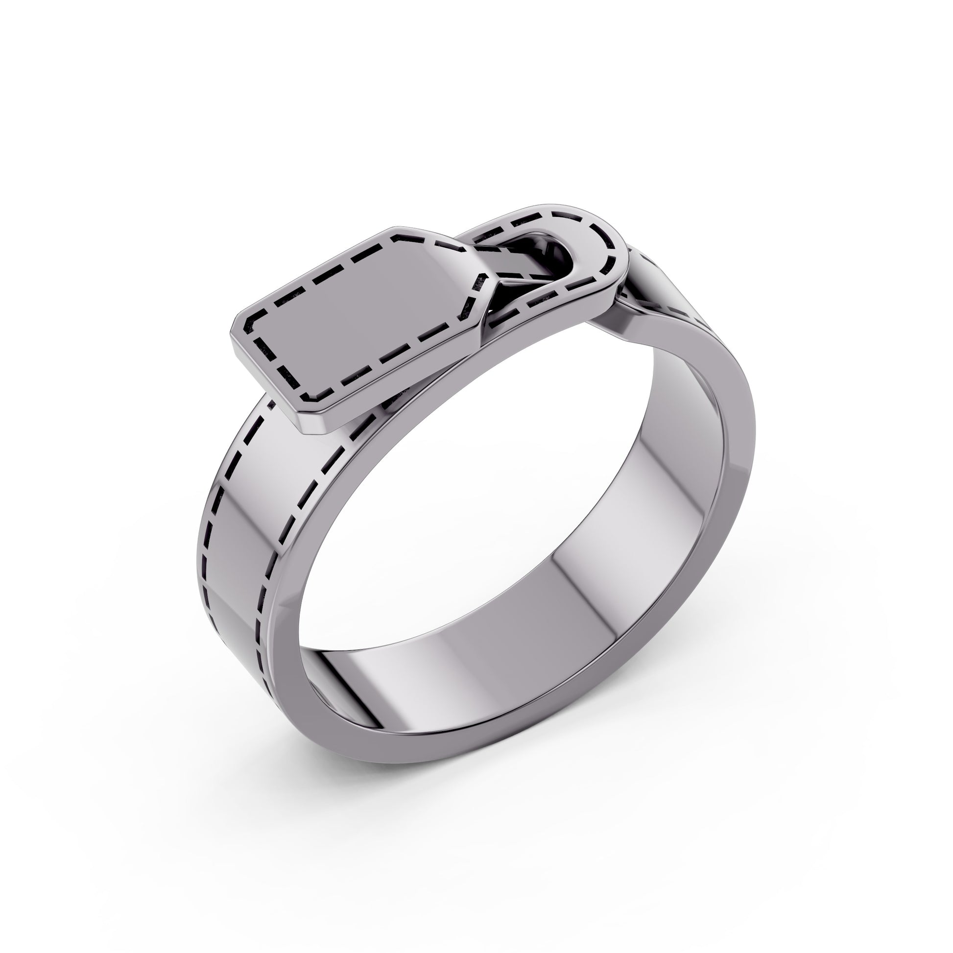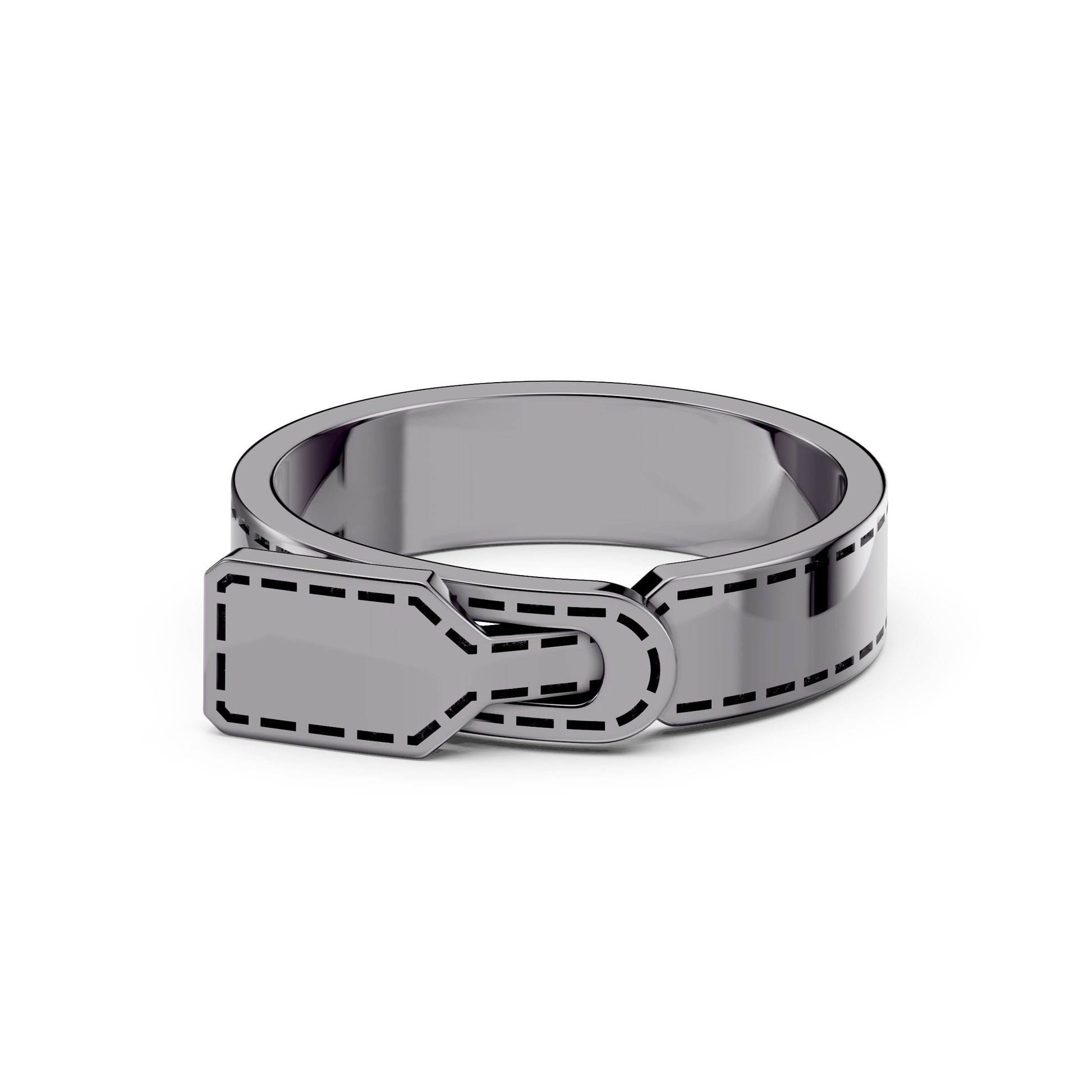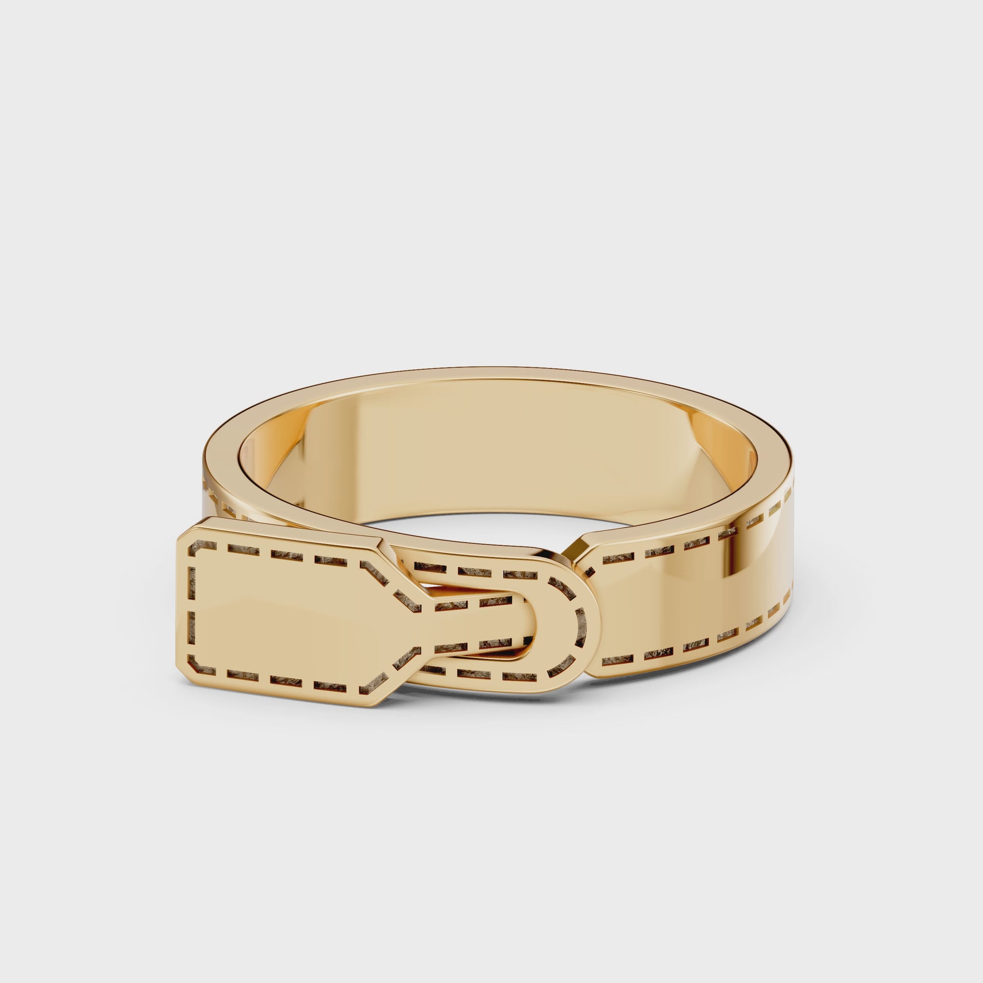Le corps de bague présente un motif de couture délicat, inspiré des finitions de la haute maroquinerie. En son centre, une étiquette stylisée évoque les tags de bagage, symbole du voyage et du souvenir, ici réinterprétés en métal précieux. Ses lignes franches et équilibrées lui confèrent une allure distinctive, à la fois contemporaine et raffinée.